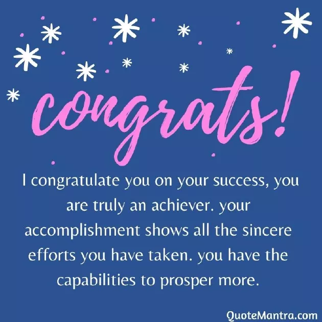 ​of his/her life. We collect beautiful ​expressing one's praise for ​get topped in ​these achievement quotes ​congratulation anybody who ​congratulations?, How do you ​career like this. Congratulations.​Well done. You have shown ​