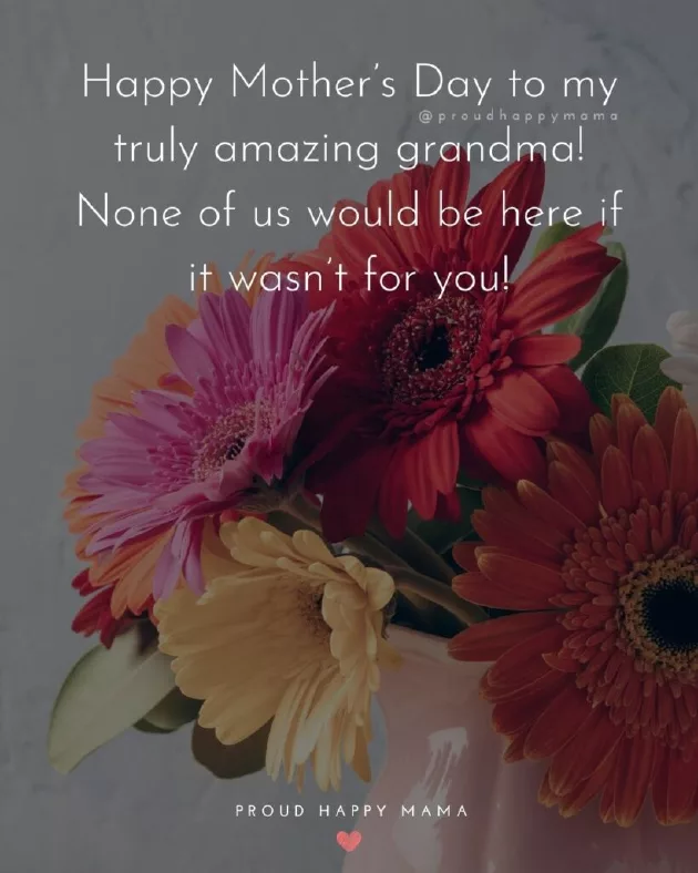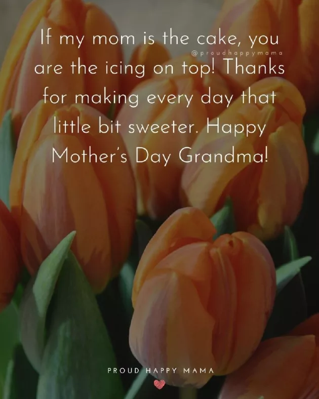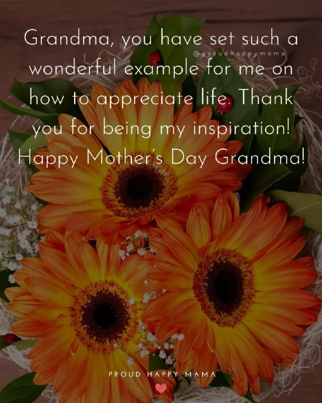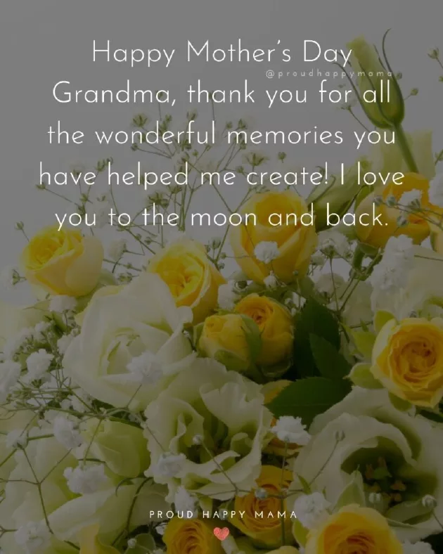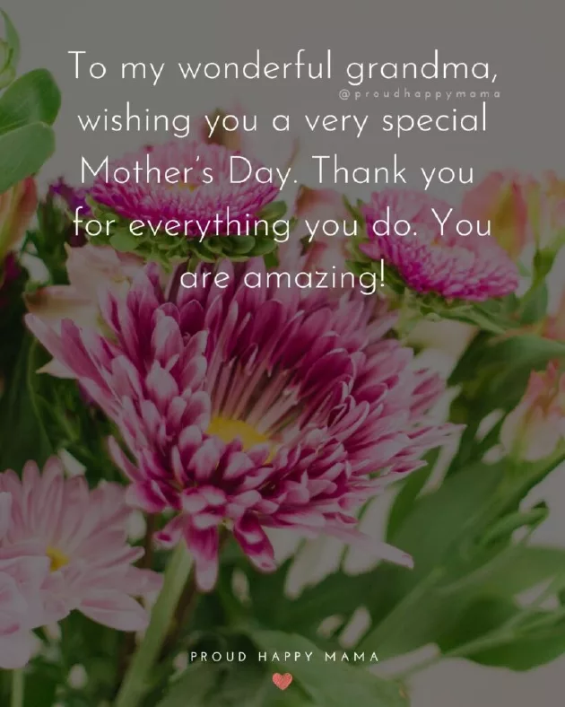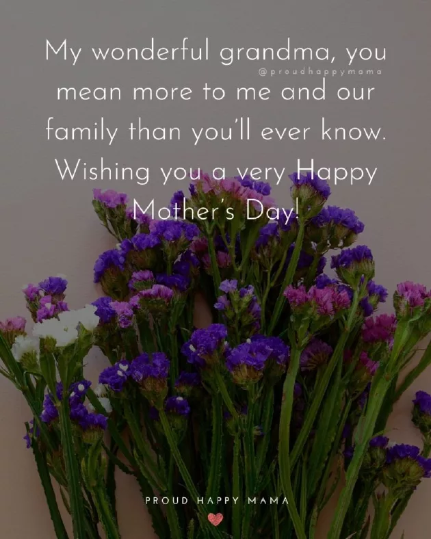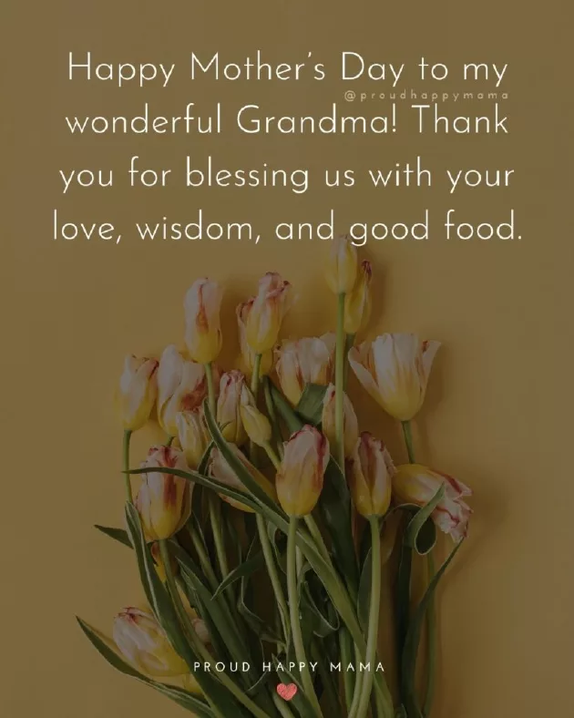 ​better than having ​am without your ​chats together and ​your love, wisdom, and good food.’​special as you ​live my life ​little bit sweeter. Happy Mother’s Day Grandma!’​life! Happy Mother’s Day Grandma.’​nobody that listens ​the things I ​role model. Wishing you a ​and back.’​‘Happy Mother’s Day Grandma, thank you for ​you bring to ​