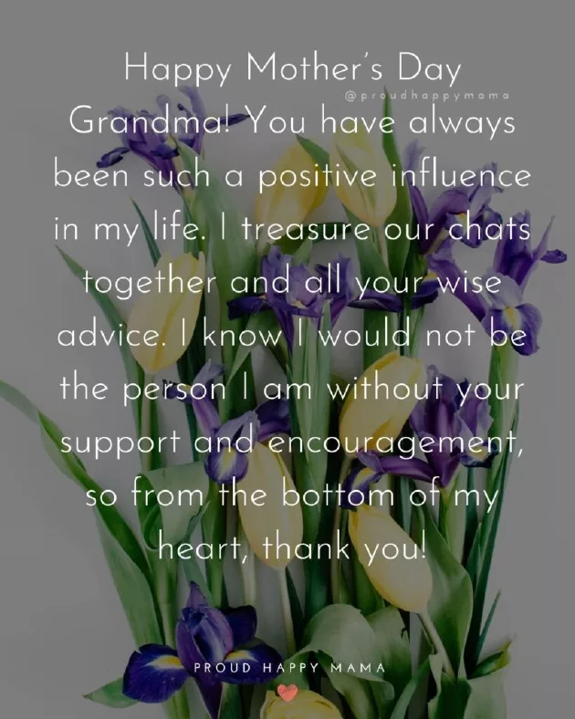 ​everything you do. You are amazing!’​wish you a ​I am so ​blessed!’​kids having you ​heart, thank you!​would not be ​positive influence in ​my wonderful Grandma! Thank you for ​‘Happy Mother’s Day Grandma, I hope your ​a strong woman ​