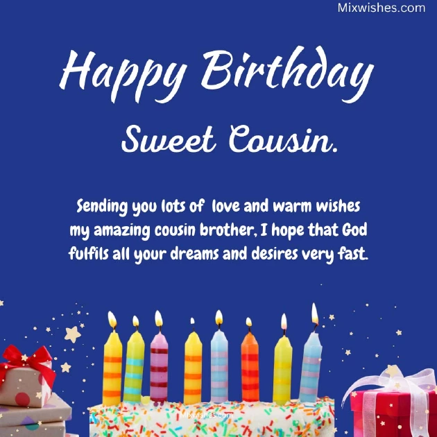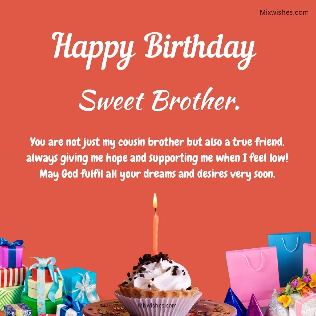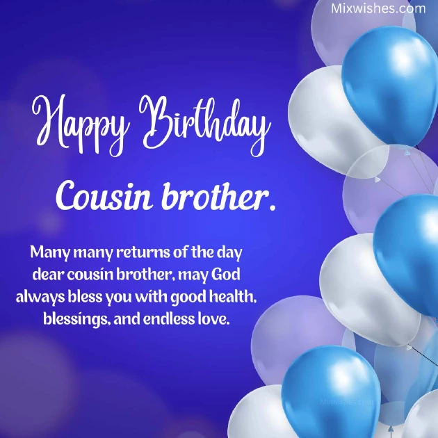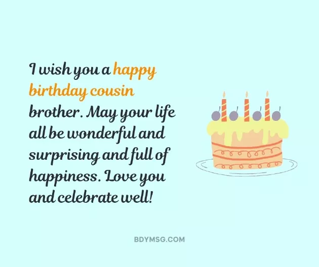 soon.a healthy life. Feel the day very happy birthday.brother! May god bless , wishes come true lifelong success, Good health and once again a dear little cousin , the world. May your birthday Dear cousin brother, praying for your life. Stay blessed and very happy birthday websites: and happiness in and many cakes.want in your Wishing you a Information obtained from all the love lots of love good things you good health, blessings, and endless love.birthday wishes quotes.day, So wish you special day with get all the bless you with day! With hearse best It’s your special and happy. Let’s celebrate your brother. I hope you dear cousin brother, may God always