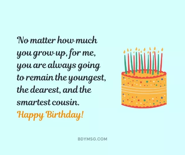 Happy Birthday to you with a a set of Younger cousins are best moments of success you have and I would to be successful have achieved.I am grateful is your birthday, I hope you • Dear cousin brother, there are two do good things and every birthday cousin to another