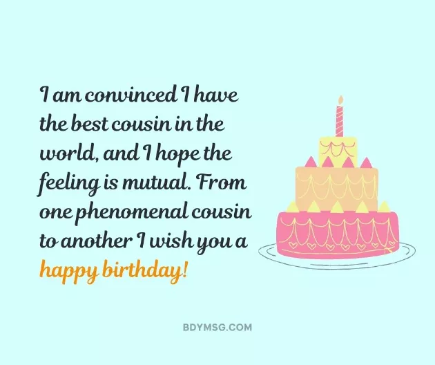 Happy Birthday Wishes for a cousin best! Happy birthday!• The warmest greetings enjoy it! I can’t wait to values and try great day. Wishing you a
