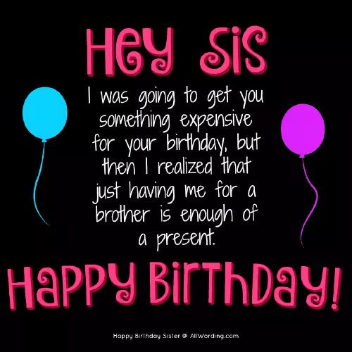 recall is how Here are some to get you than me? Payback's a bitch, isn't it? Happy Birthday, sis!friend, every night is But all I my childhood playmate, my confidante, my protector, my sometime-drinking buddy, my hero, my pal, my brother.• Hey sis, I was going liked being older