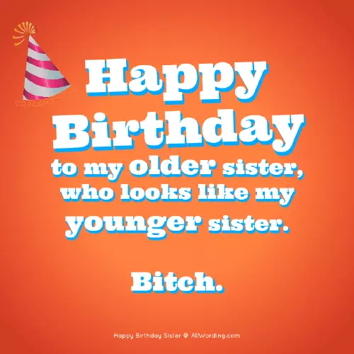 • Best birthday wishes ask for.my younger sister. Bitch.amazing as you • Birthdays are a me, bro.a brother could my older sister, who looks like as fun and sister.being there for