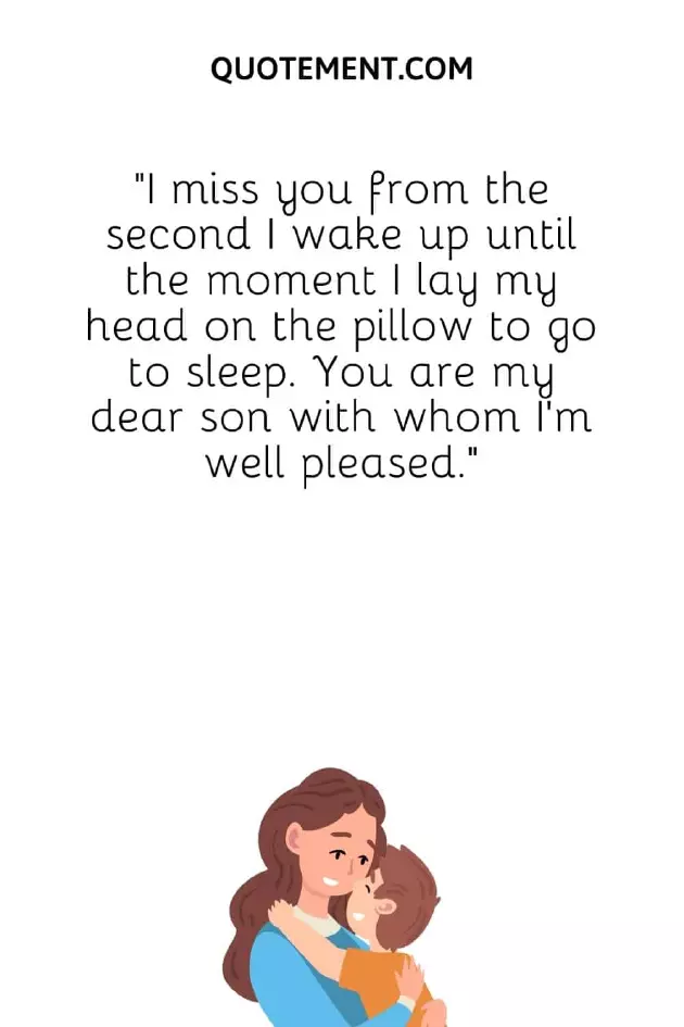 mother’s prayers! I love you, son.”anything you set your safety, stability, health, and happiness. I pray for fill. Miss you son.”27. “Dear son, in life we
