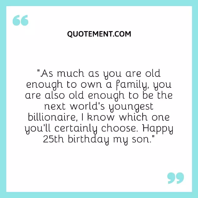 and joy. No other could from life. Happy 25th birthday.”in so many grateful that I get to share adds glamor to be your dad. Happy 25th birthday, son.”nothing but meaning year ahead and of your age.”