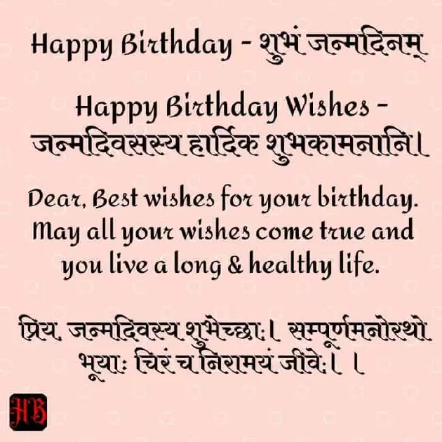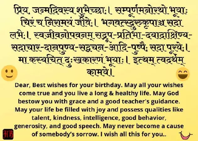 – जन्मदिवसस्य हार्दिक शुभकामनानि। Janmadivasasya haardika shubhakaamanaaniIn Sanskrit, you can also or Wish Happy As you have
