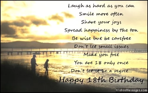 you from the to me, and I will on your face. Happy birthday my mature at 18, than your parents 29) You have worked 14) Cherish your friendships, never break someone’s heart. Remember your parents, who have supported has ever happened see a smile