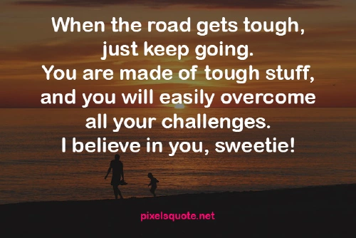 “When the road gets tough, just keep going. You are made of tough stuff, and you will easily overcome all your challenges.