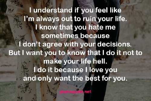 “I understand if you feel like I’m always out to ruin your life. I know that you hate me sometimes because I don’t agree with your decisions.