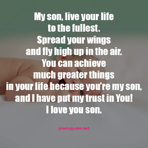 “My son, live your life to the fullest. Spread your wings and fly high up in the air. You can achieve much greater things in your life because you’re my son, and I have put my trust in You!