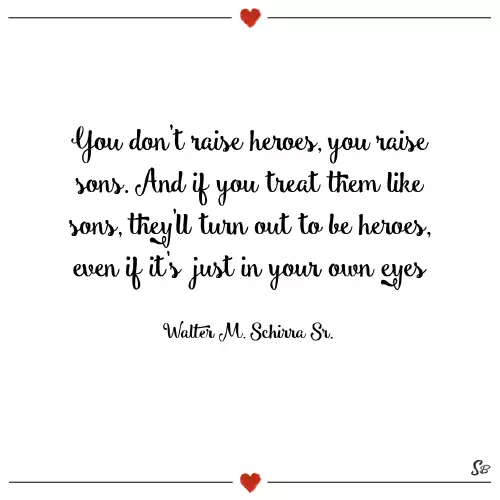 “You don’t raise heroes, you raise sons. And if you treat them like sons, they’ll turn out to be heroes, even if it’s just in your own eyes.