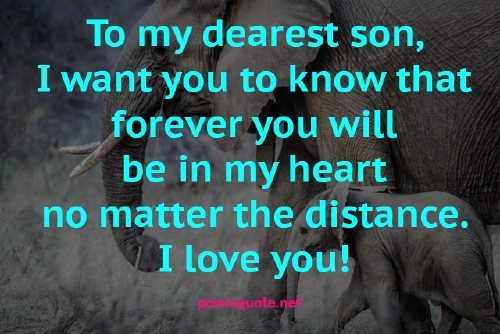 “To my dearest son, I want you to know that forever you will be in my heart no matter the distance. I love you!