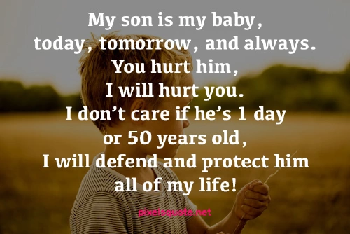 “My son is my baby, today, tomorrow, and always. You hurt him, I will hurt you. I don’t care if he’s 1 day or 50 years old, I will defend and protect him all of my life!