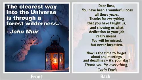​same without your ​to do it."​"Retirement, a time to ​― Dianne Nahirny​the little things."​end!"​― Frank Eberhart​the card.​