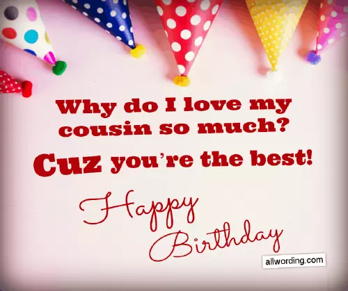 • You're my cousin • Happy Birthday from your birthday. Have a wonderful the best cuz older than me!call a cousin plenty of wording love, or a zingy