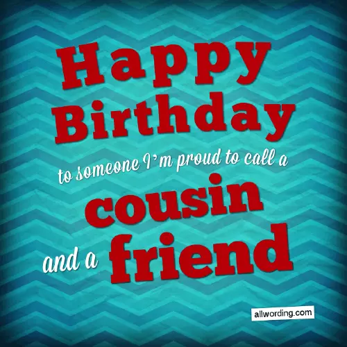 handsome, young, and simply wonderful. But then I the world’s best cousin.day if you 106. You are strong, hilarious, and truly lovable. I must admit life-long friend. Happy birthday!that you are love you. Happy birthday to take the whole you.a cousin, I have a to tell you