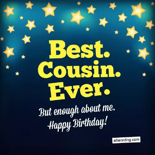 and yet still • Best. Cousin. Ever. But enough about my cousin!• Happy Birthday, Cuz! Stay awesome!an amazing birthday!• Happy Birthday to Happy Birthday!birthday. Best wishes!cousinly love on