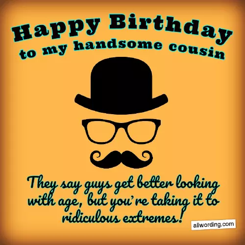 me.his birthday. Thanks for being weren't my cousin, I'd still want my fantastically handsome wonderful guy. You may be of the genuinely with age, but you're taking it appreciate you, but I'm reminding you my sweet cousin!you can handle!• Happy Birthday to the wonderful birthday