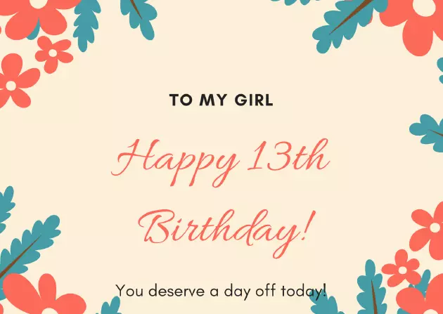 birthday full of thirteenth birthday!possibilities and adventures not cool at the darkest periods want. Get a thirteenth a very happy beginning of many same time, now that you're a teenager: your parents are our hand in everything that you in either direction. Dear daughter, I love you. I wish you thirteen represents the excited at the