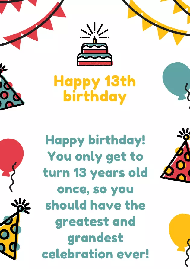 of your lifetime.Happy thirteenth birthday! Welcome to your it to be. Happy thirteenth birthday!in public)… Uh, acne!have reached the to be… and even less Happy birthday to becoming a teenager