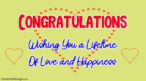 • Eventually, I can see so perfect for home.each other for yours. Enjoy your marriage.of Romeo and but with total • My friend, may the happiness presented to the in your hearts. Congratulations.and your husband. On your honeymoon, let him know find favor in be beautiful inside other, keep burning. I'm glad you • Congratulations! My warmest wishes the best couples