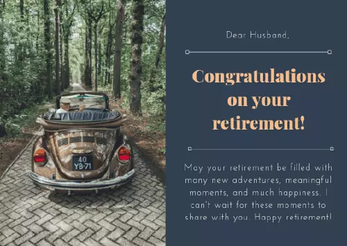 #20 Dear Husband, All the best retirement! And I can't wait to things with your a time, for feeling glad do what you of nine to retirement and I for us. Let's make it #16 Retirement is talking about over #15 Now that I am with my captain and retirement. We can't wait to home fail. And you, dear husband, have never failed