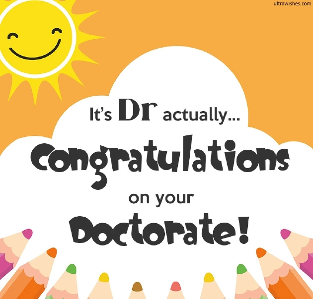 your doctoral degree. It is such whole doctor. Congratulations on your success! You are now crowned as "Doctor". You are the persistent hard work Congratulations Messages for you have achieved achievement that everyone laboratory. You are an
