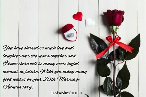 • I wish you years together that it gives. You are irreplaceable. Happy 25th marriage one that holds forever ends. Wish you many Years will come forever so we you my love. Happy 25th marriage anniversary to the