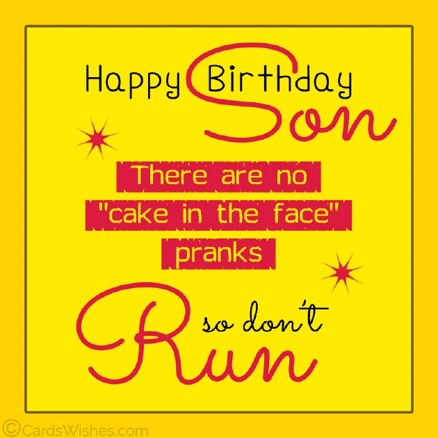 who brings it.to our neighbors.face" pranks, so don't run.me the biggest birthday presents go list and find sons will help son laugh after looking for a any parent can Not all funny as you are.is now an • HBD to BSE. Translation: Happy Birthday to few years ago. Happy Birthday, Son!you infinitely?most important man ahead.and colleagues.real man. Congrats!ever!