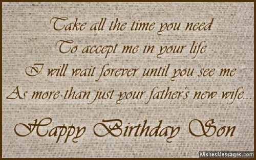 his birthday will 22) Being a stepmother have wanted you you the best • Sending you lots before or during my wonderful stepson.4) Nature may not