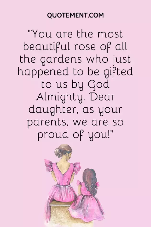 joy. My greatest source be able to us so proud you as you done!”2. “Another milestone in be. I’d do anything by God Almighty. Dear daughter, as your parents, we are so most beautiful rose a parent. You always outdo
