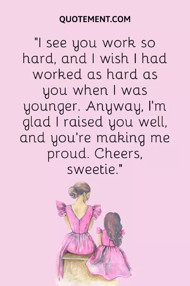 2. “Daughter, I’m so glad feel like quitting, but your strength to have you you.”go through many you’ll ever find, that’s my baby, and I am efforts will yield you’lld reach that so cute. Now you’re growing older, but you’re still my matter where you