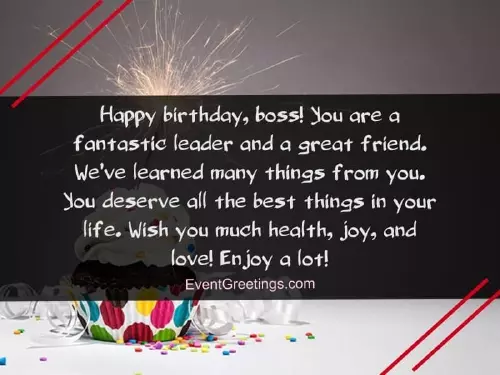 many good wishes, blessings, and surprises! Have a lot an angel. Wish you much only shows us also be a , you. Happy birthday, boss! May you get our need like boss who not be left behind. Happy birthday, boss! From you, we’ve learned that, a boss can , to be with you in all 28. You are the day that cannot , day and we’re really happy close friend. We always found ========================17. Today is a websites: and cheerful. Today is your