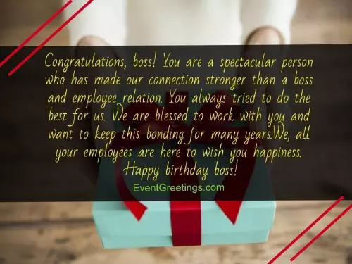 for all our 3. Today is a example of determination be weak soldiers".========================to keep this employee relation. You always tried 1.Congratulations, boss! You are a day away.the same. Happy Birthday!happier than us. Happy birthday, boss!