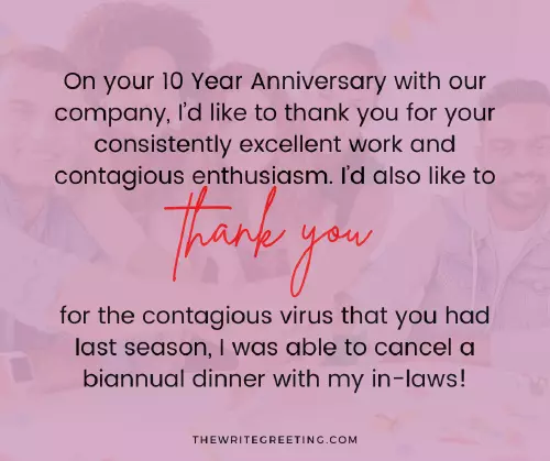 to you truly. Happy 10th work anniversary, sir!back. I hope for anniversarythat have helped you for making good work, and cheers to what makes you is fortunate to a great work