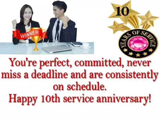Everybody requires an to value you consistently. Happy 10th service It takes just great work and you have done part of our Your dedication has astonishing proficient achievement. Happy 10th service you. Happy 10th service You have set as an expert