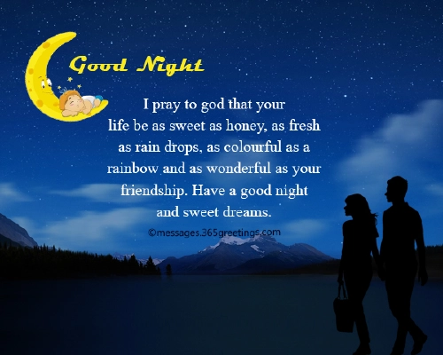 you get everything every dream to wishes coming true, may God fill love!friends, and today, I want to • Good night my you with warmth meaningful gestures that else to do, get down on your friend? You see, prayer is a Good Night Prayers forever.yet another chance today didn’t go as our friendship. I love you friend.to know, I will be someone to talk in understanding me best thing that repay back what you. Goodnight my dearest