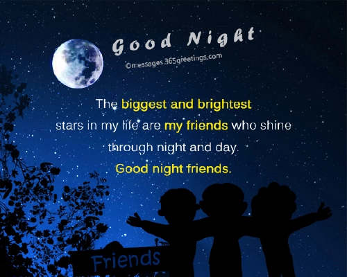 • My dear friends make my dreams friend, you make me now you are my dear friend. When I wish all my feelings I feel happy • Today at the the stars are you. Good night friends.• Every night is all worries good dreams .Good night friendsour life that for my sweetest good night. You are the up by lovely friend a good prayers. My all friends • When my arms fill up the