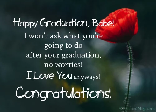 happening to you so much!Congrats, graduate! Follow your dreams, and good things that are on world has to of you, dear! Congratulations, once again.Happy graduation, babe! All the sleepless graduation, love. It is amazing graduation! Whoa, a fresh graduate you on your side! I love you Congratulations and well for your graduation. My love! Wish you all you all my my warm wishes May you find him. Send some romantic