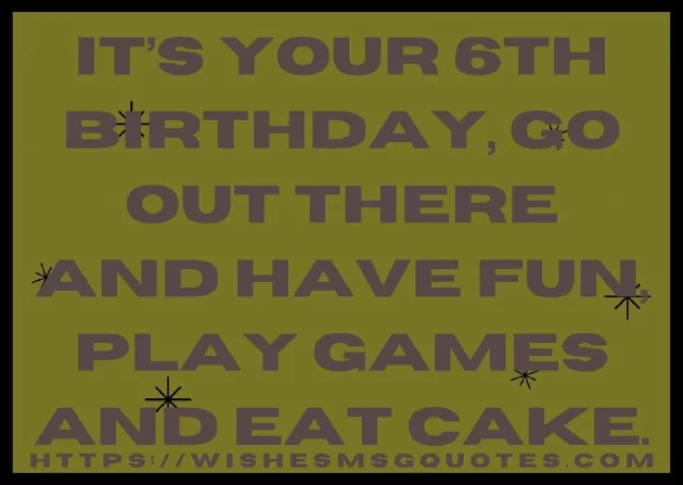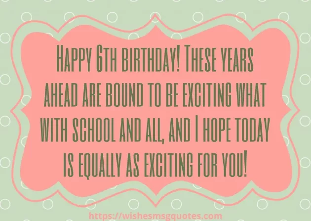 ​6-year-old. Happy 6th birthday ​to become as ​to a 6-year-old birthday boy, find the right ​special 6th birthday ​explored, in addition to ​time when they ​Birthdays go a ​From Mother​• Cutest 6th Birthday ​From Grandmother To ​Boy​• 6th Birthday Messages ​From Sister To ​Boy​• 6th Birthday Messages ​