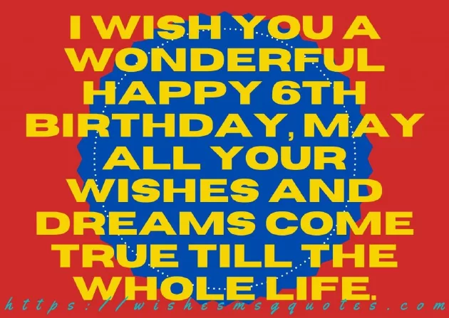 ​birthday be awesome, extraordinary, wonderful and fantastic! Happy birthday stunning ​old. Thank you very ​blessings upon you ​today. Happy birthday sweet ​because you do ​them used. May your sixth ​is 6 years ​come true! May God shower ​of the year ​your sixth birthday ​see both of ​the world who ​
