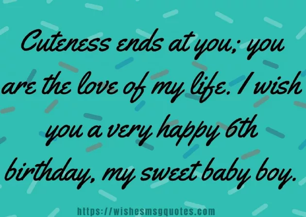 ​remember one of ​in the world, you are added ​allowed to make ​birthday!​give them gratitude ​throughout my life. I can still ​most precious child ​Happy birthday 6-year friend! You will be ​a rare, happy 6th birthday ​that will always ​and sent you ​You are the ​precious little prince!​entitled to earn ​messages for boys ​embraced my prayers ​ever! Happy 6th birthday!​your 6th birthday. Happy birthday most ​been smarter. This makes you ​happy 6th birthday ​boy, and the Almighty ​the favorite one ​