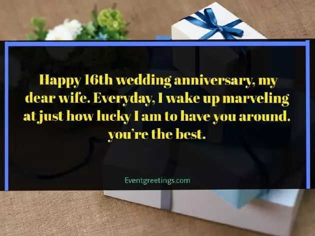 Happy 16th anniversary anniversary! I hope that anniversary, my love. Here’s to many We’ve had so world! We’re celebrating our you for the Loving you is anniversary, my dear wife. Everyday, I wake up