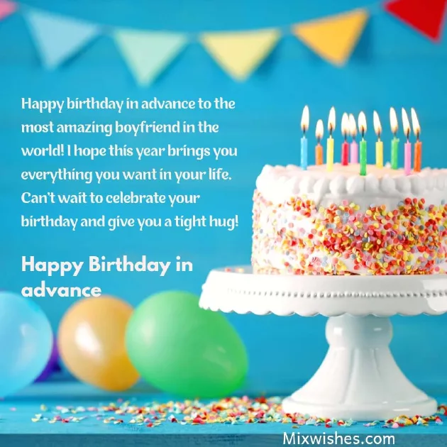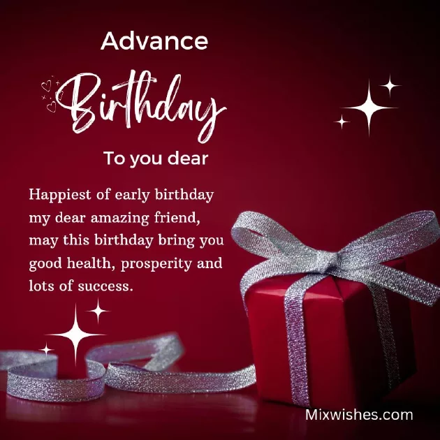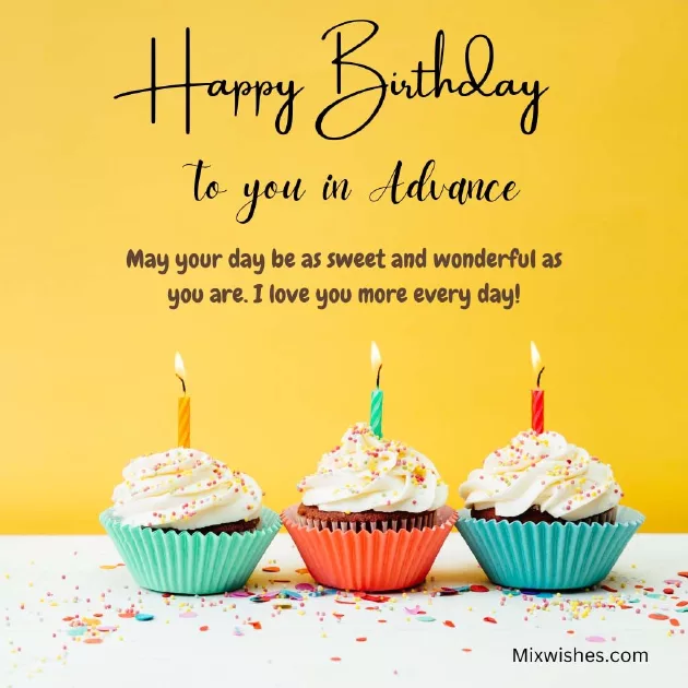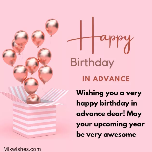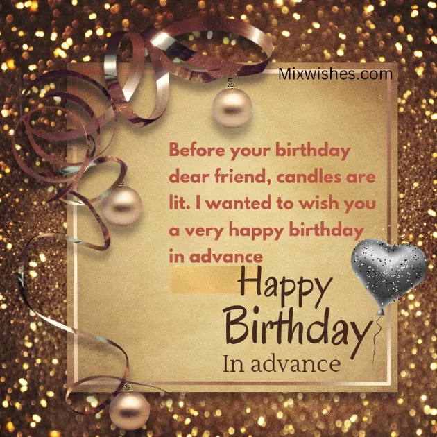 wish you advance today is not grateful to have surprise.early happy birthday birthday bring you very happy early everyone happy. So always keep