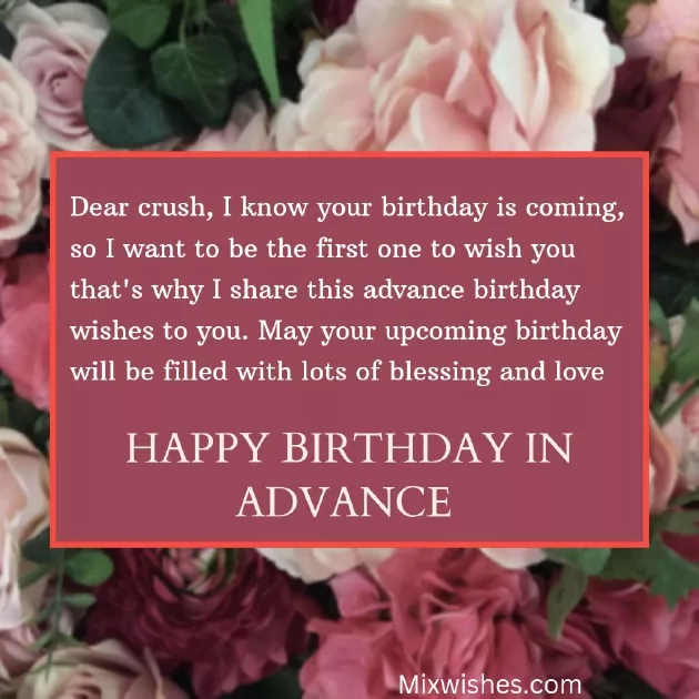 share this advance Dear crush, I know your birthday will be world.Happy early birthday but your smile for your future.Happy birthday to true! Wishing you nothing