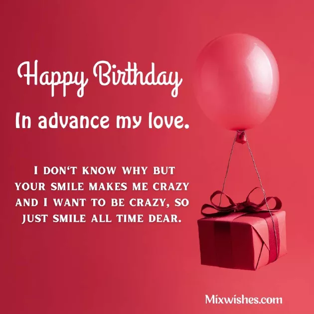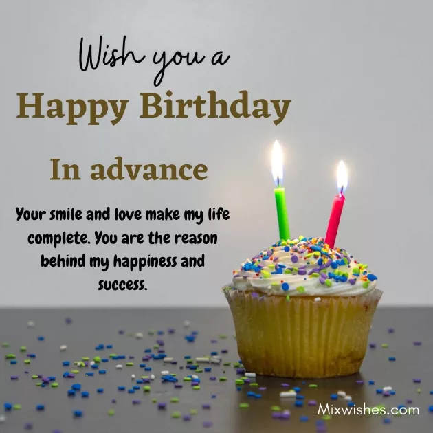 An advance happy birthday. Your smile and and thanks for in my life, without you I you are. I love you to the one MessagesAdvance Birthday Wishes the grace of