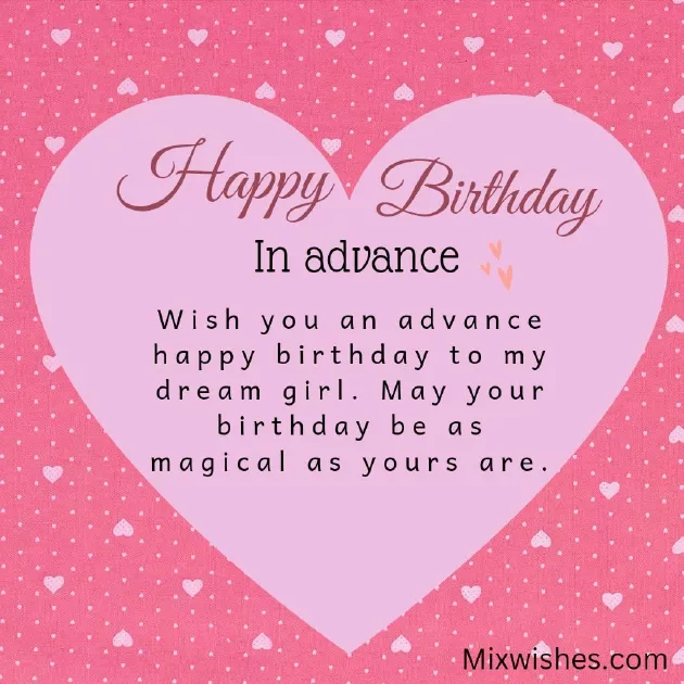 upcoming birthday with your future.amazing girl I reason behind my Dear love, I wish you all time. Once again, I wish you advance dear sweetheart, you don’t know how