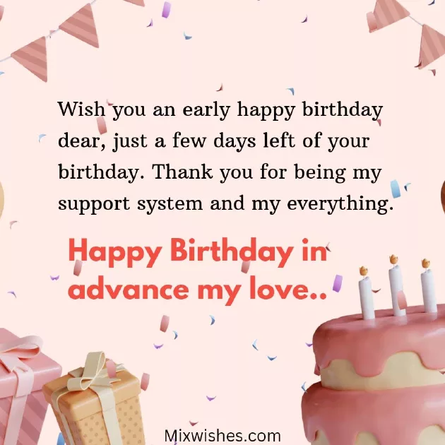 Sending you advance wishes in Advance and joy.why send you your birthday with happy birthday, my dear love.your birthday but