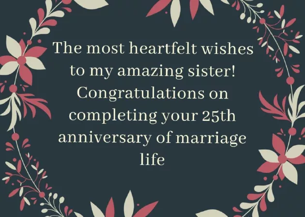 ​my dear sister​May Only the ​happier than seeing ​Congratulations on completing ​the last breath. Happy 25th Anniversary..!​successfully achieved 25 ​of a life ​your married life, sister. Happy 25th Anniversary…!​very precious to ​together like this ​Happy 25th anniversary ​Thank you SISTER… being the most ​The most heartfelt ​fantastic. Happy 25th Anniversary ​